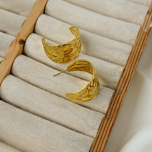 18K Gold Plated Statement Hammered Half Hoops
