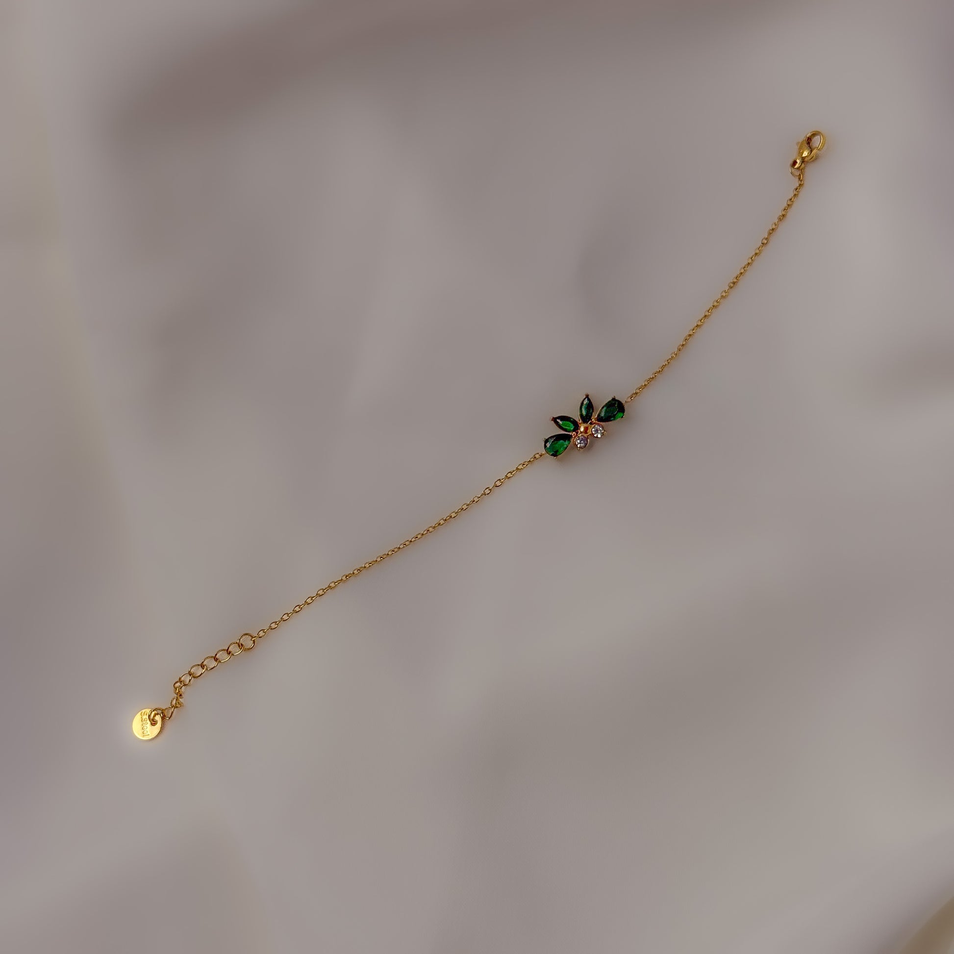 18K Gold Plated Dainty Green Stone Bracelet